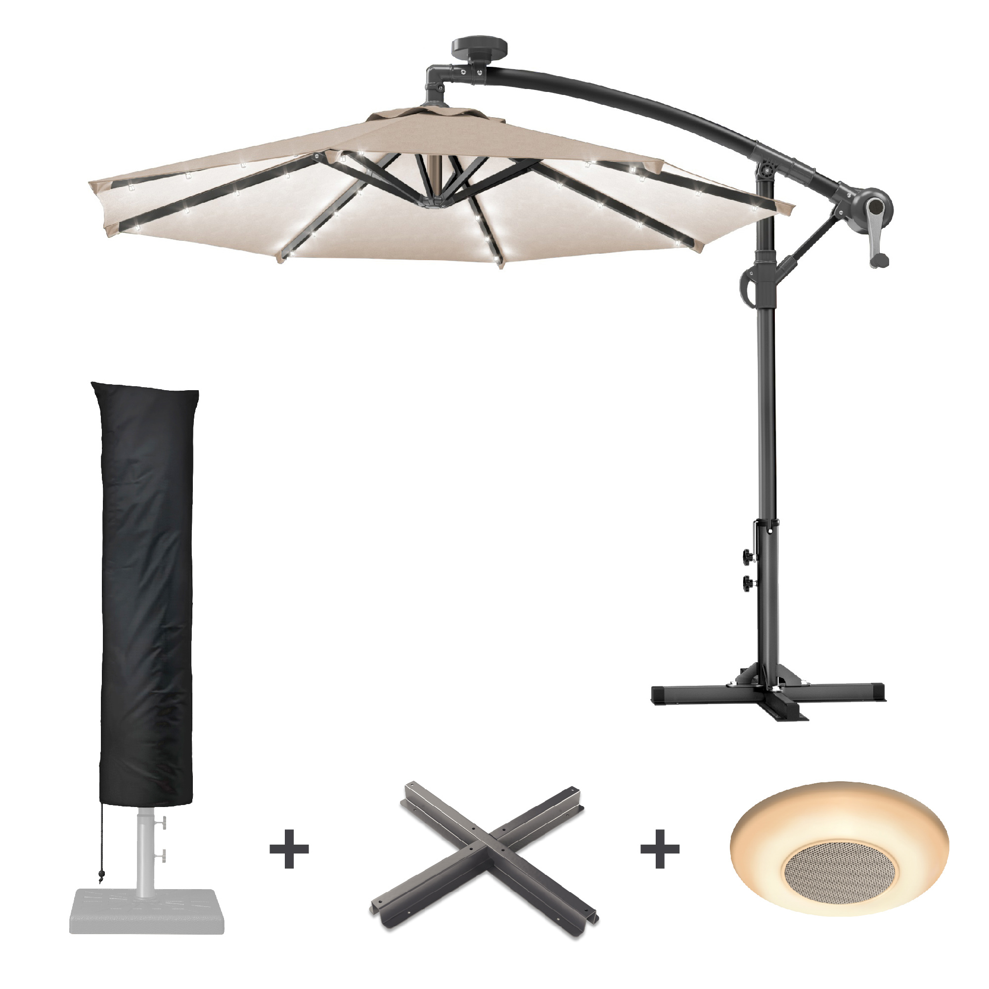 SUNSET | Parasoll | Runt | Ø 300 cm | Taupe | LED | + stativ & skydd